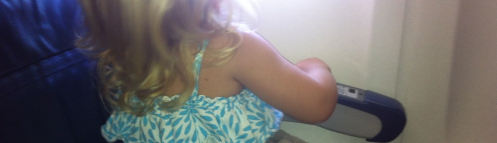 “Airplane, I am going on an airplane.” She sang and danced and ran around, while mom and Shelagh dragged the carryon luggage through the airport. I had done her hair in pigtails so that when she had a tantrum she would at least be the cute kid with pigtails having a tantrum, rather than just another snotty nosed kid losing it in a public place.