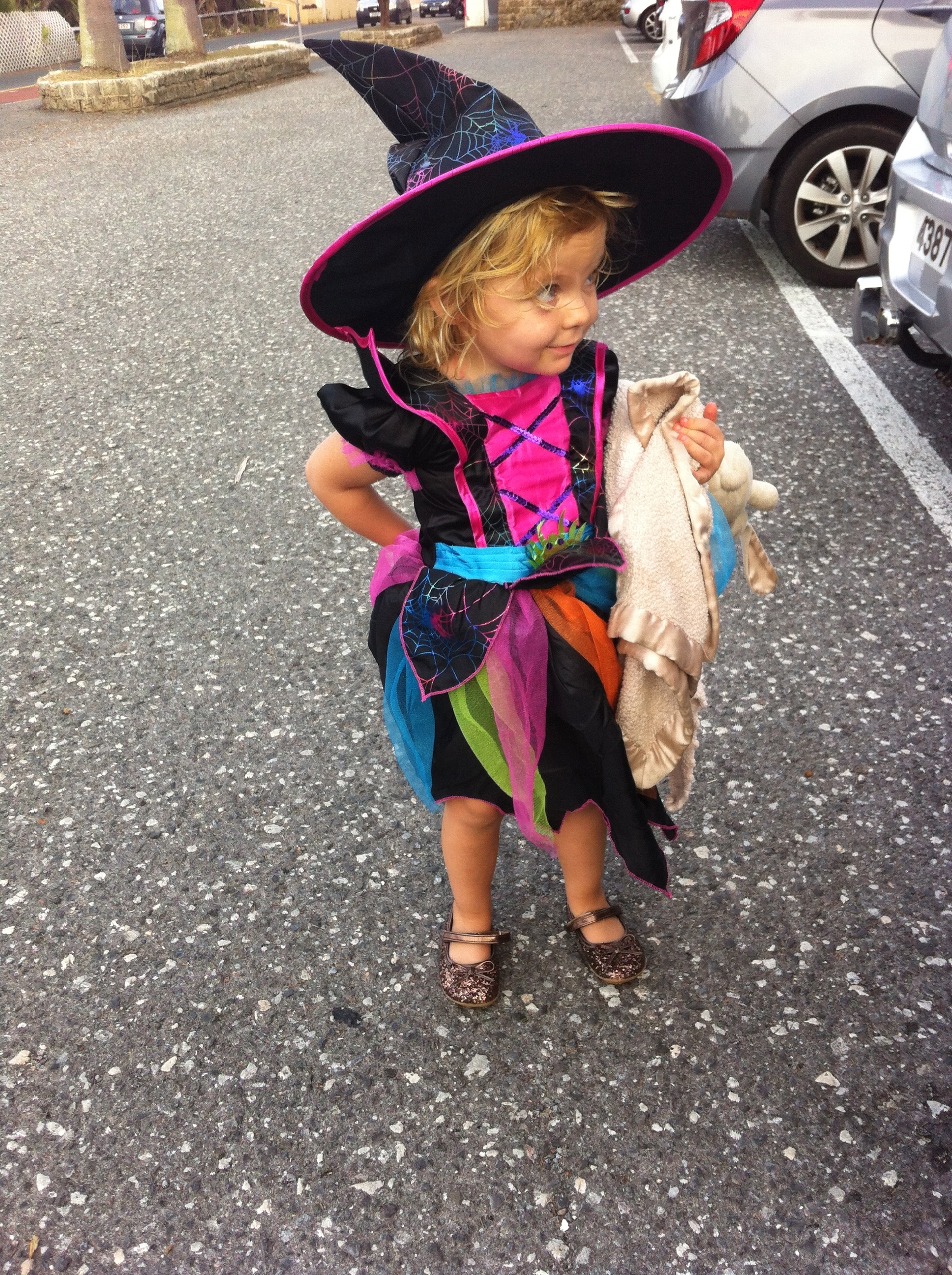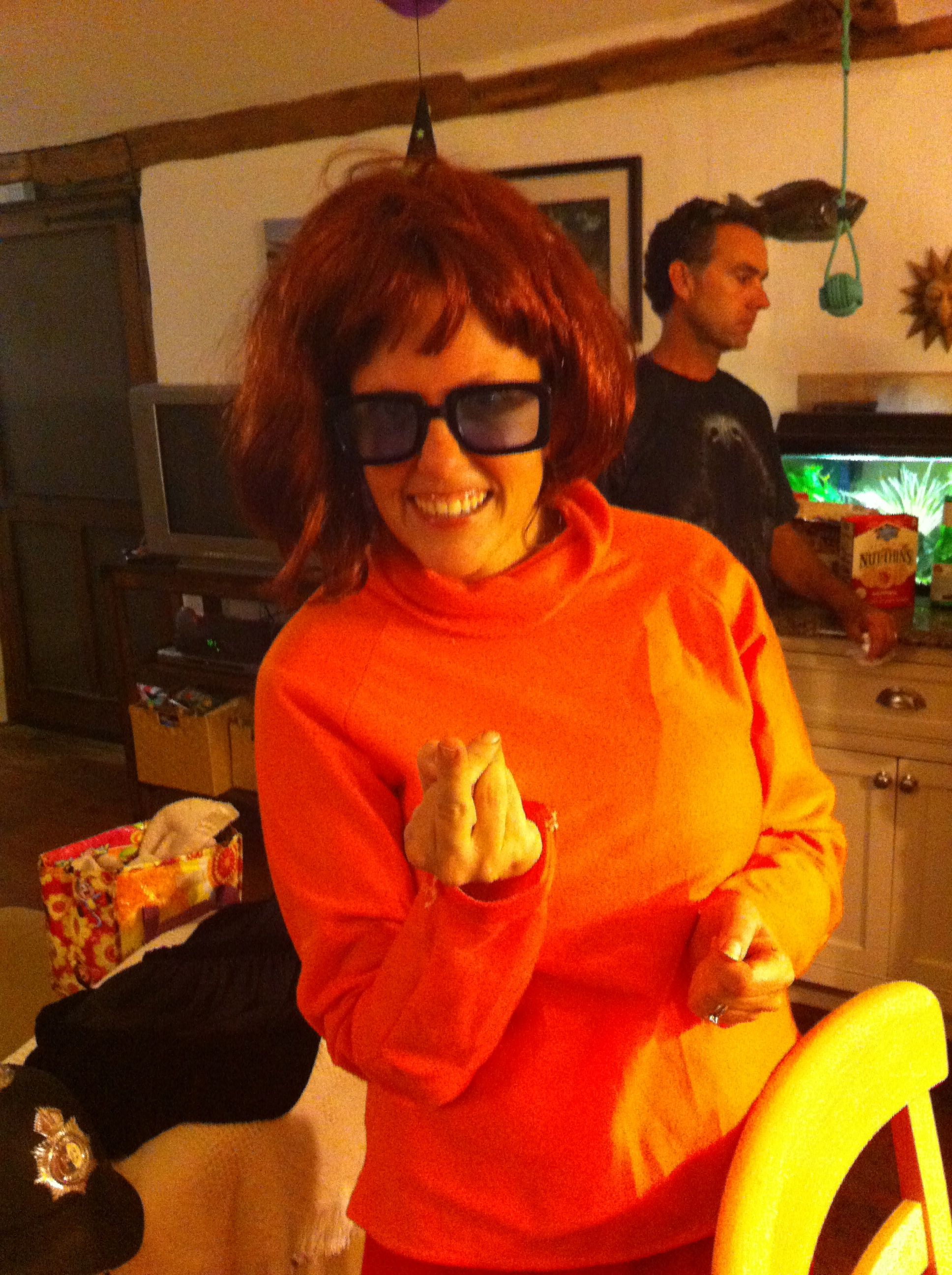 We trick or treated our way down to Eva’s classmate’s house where Eva resumed their ritual fighting over toys, while Naughty Velma had a glass of wine.